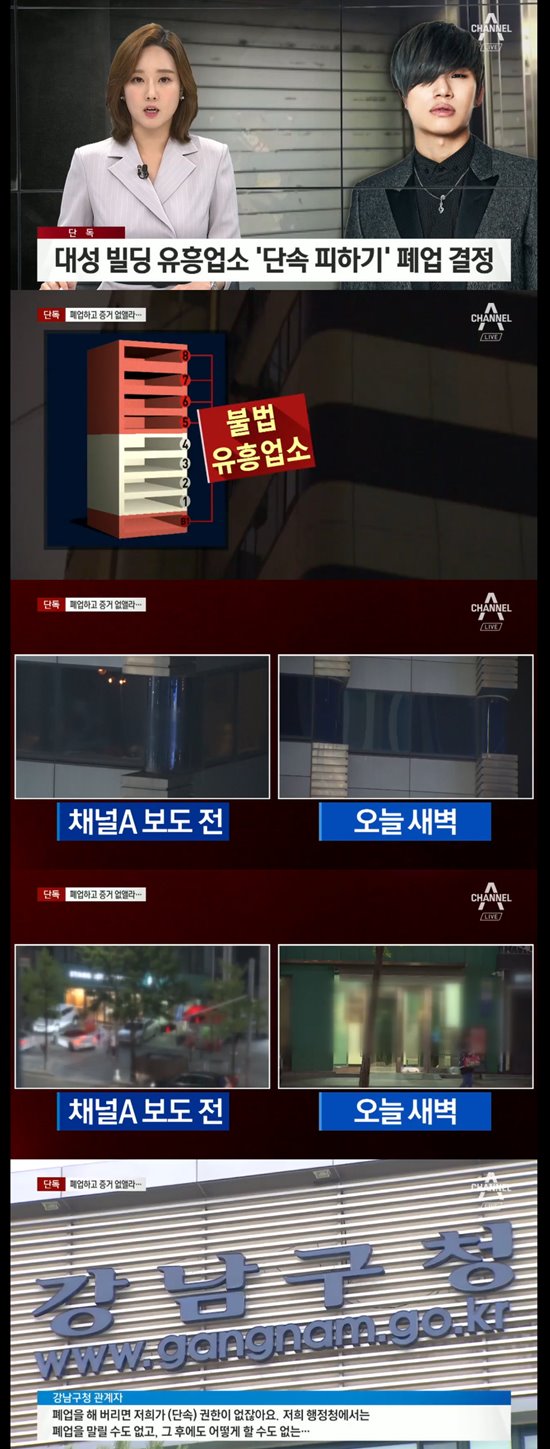 According to the sole report of 'News A', all five illegal entertainment facilities in Daesung building in Gangnam were closed.